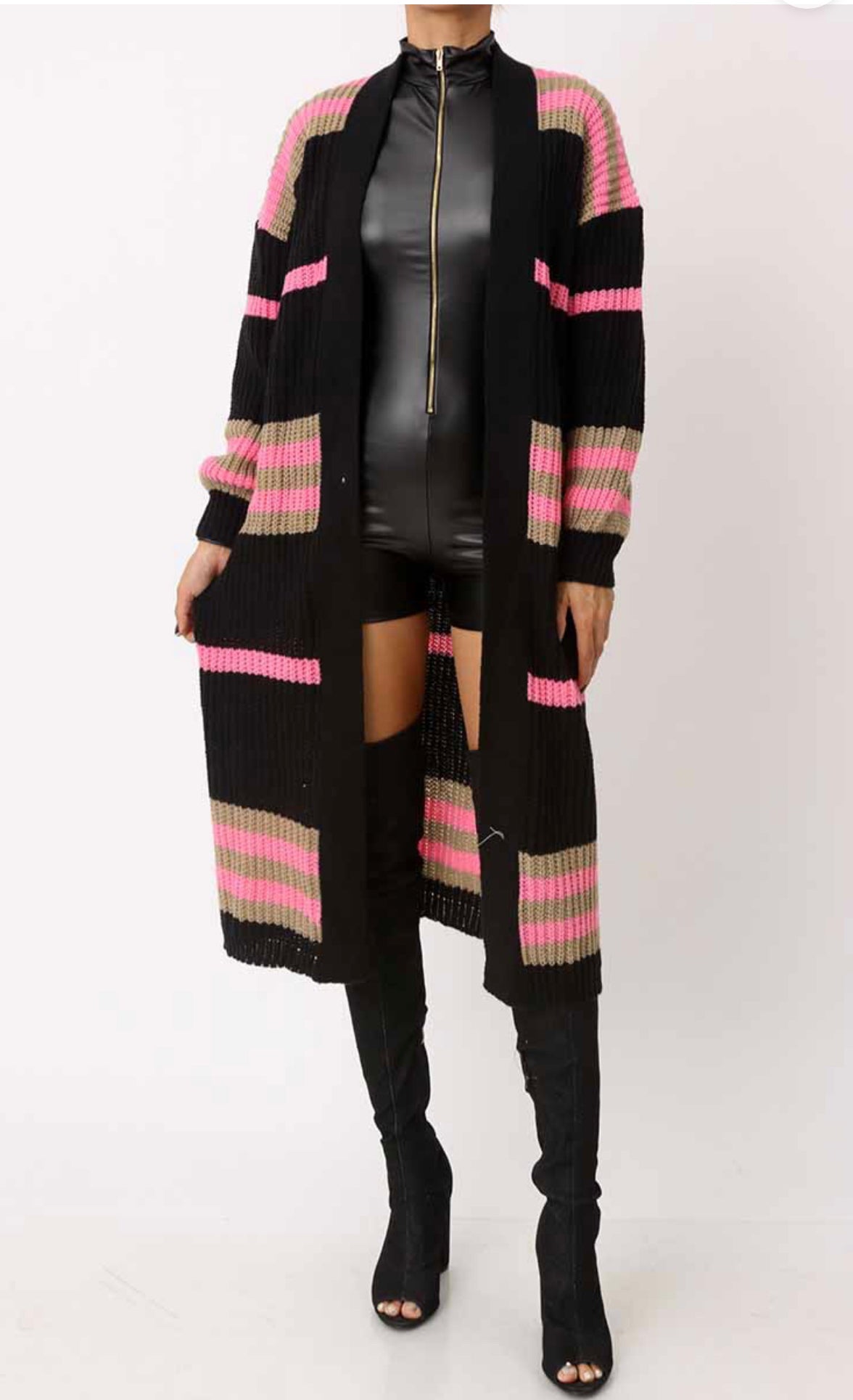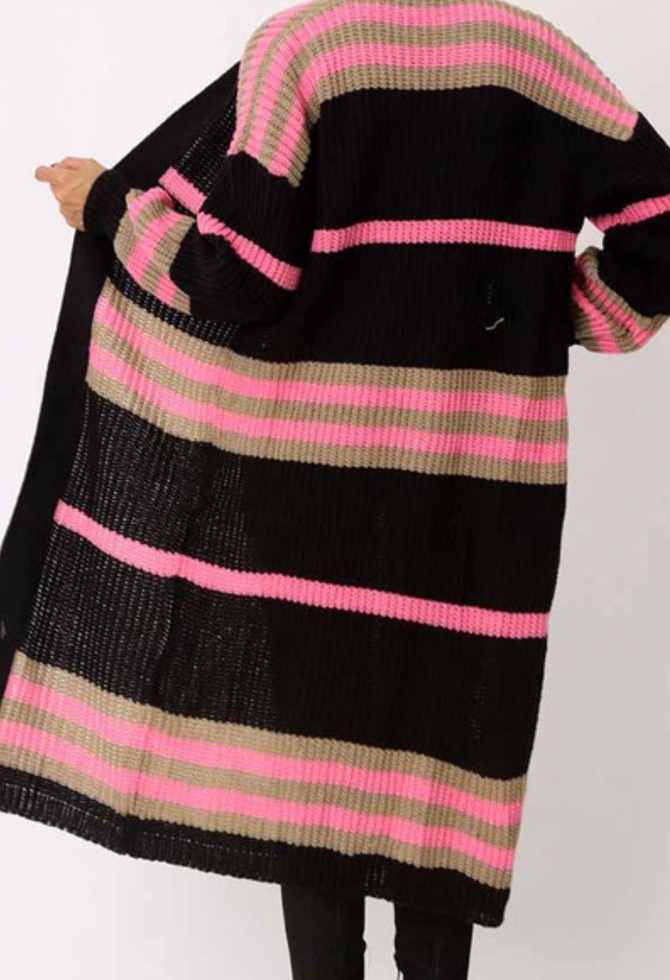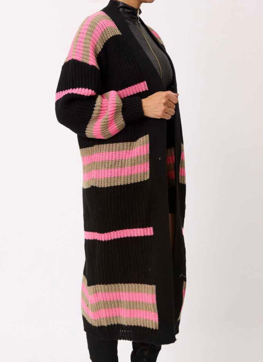 LONG SLEEVE CARDIGAN OPEN FRONT RIBBED SLEEVE HAS STRETCH BLACK /PINK